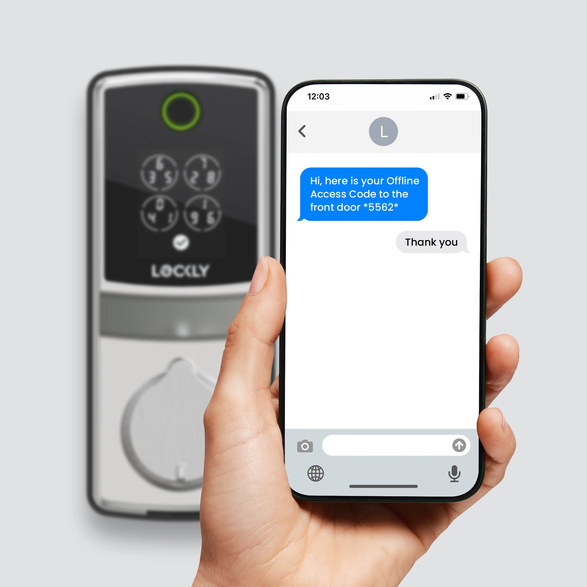 A single-use code for guests, no app download needed, issued remotely even if your lock is offline.