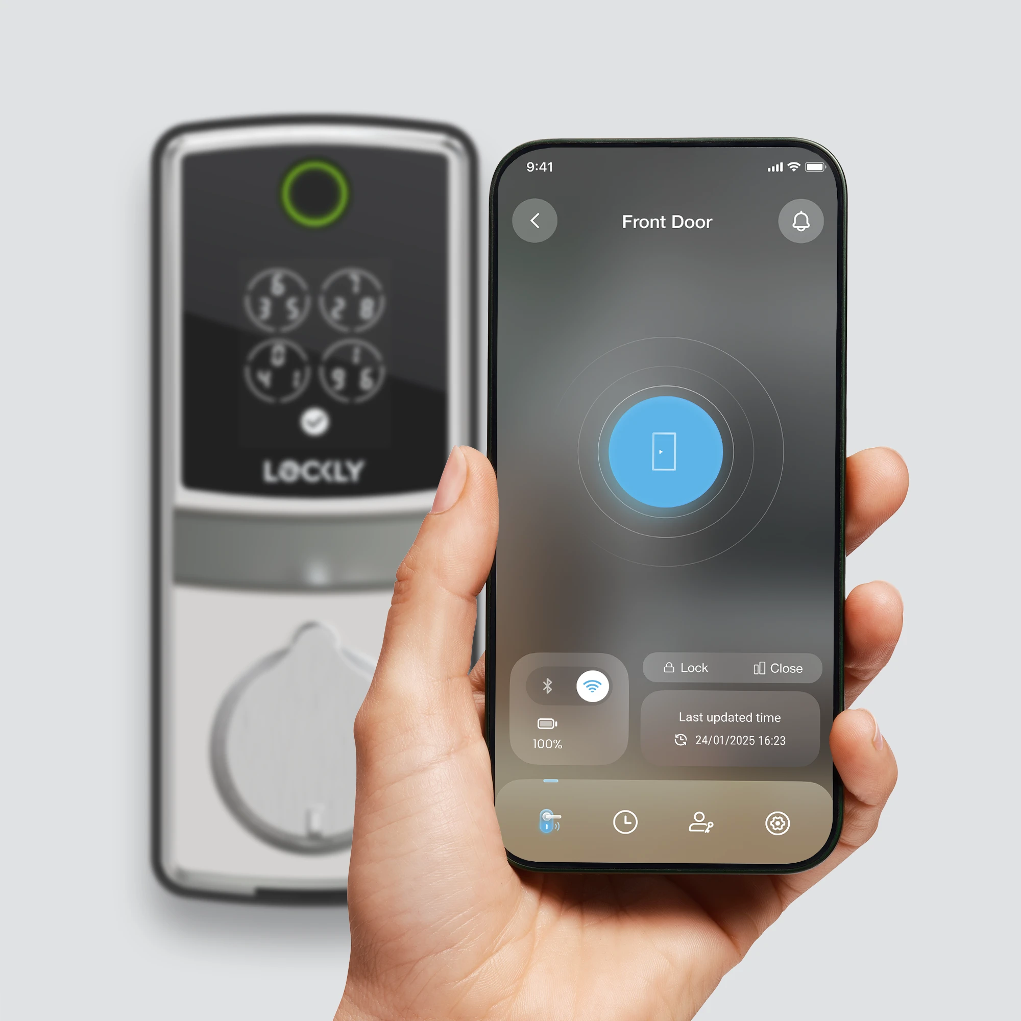 Use the Lockly Home app on your smartphone to lock or unlock your door.