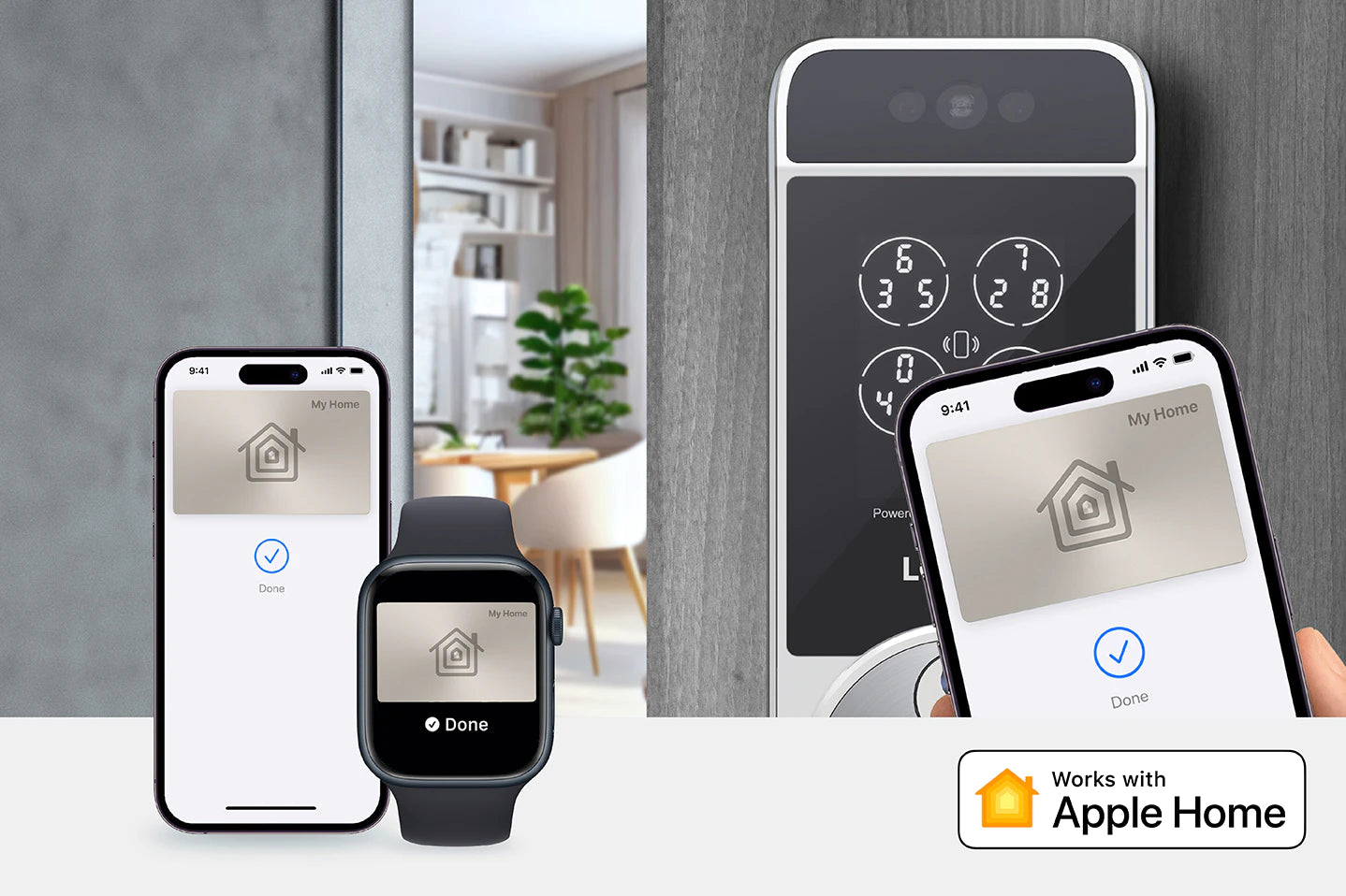 Unlock with your iPhone, Apple Watch or Siri using Apple Home Keys.