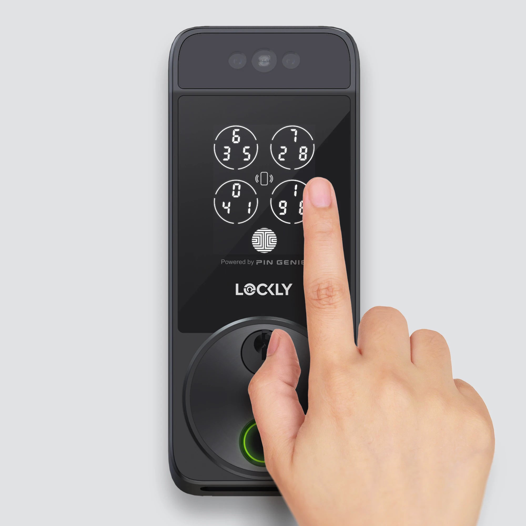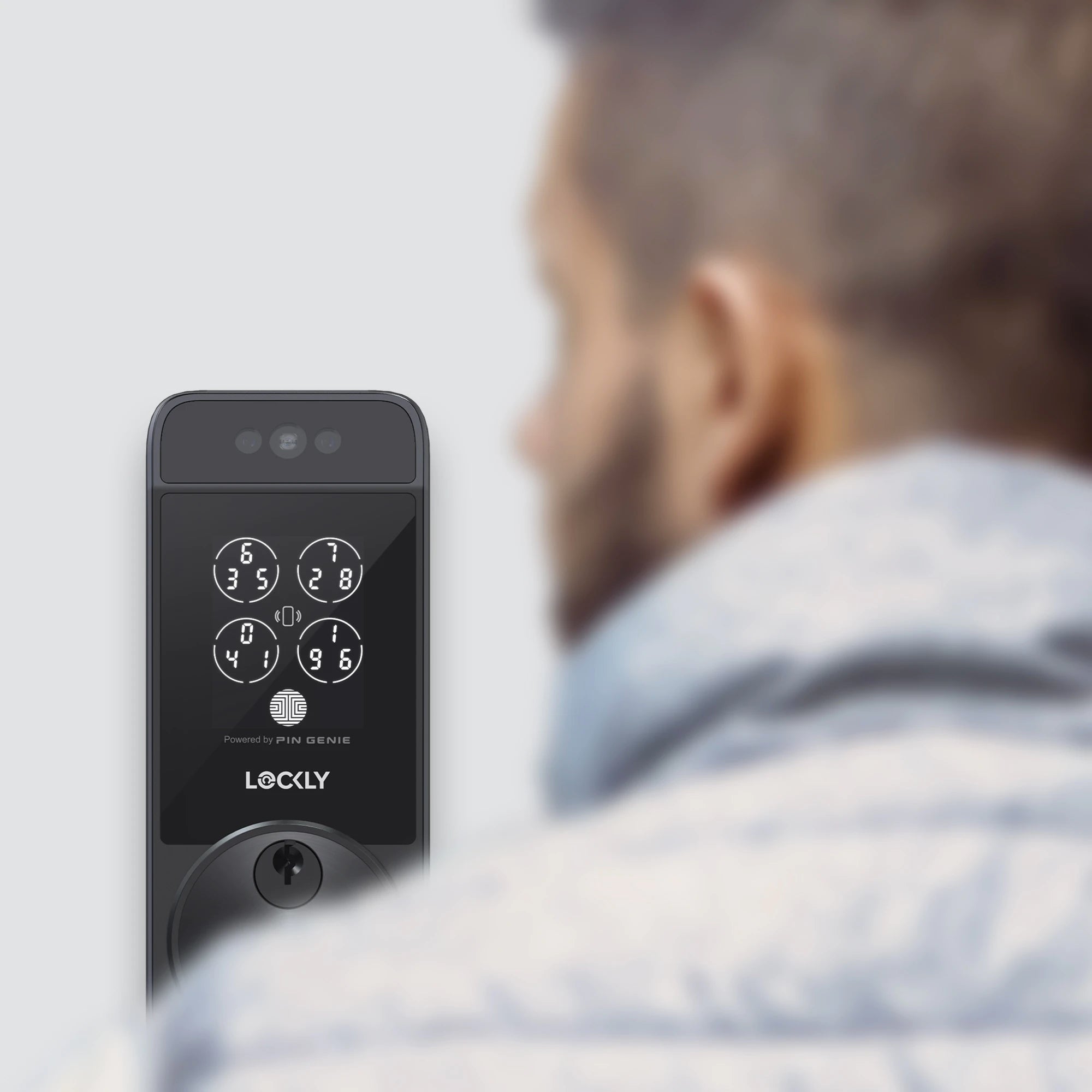 Built-In Wi-Fi | Keyless Entry | Facial Recognition | Apple Home Key | New-Gen Biometric Fingerprint | PIN Genie® Keypad | Smartphone Control | Rechargeable Battery | Manage from Lockly Home App