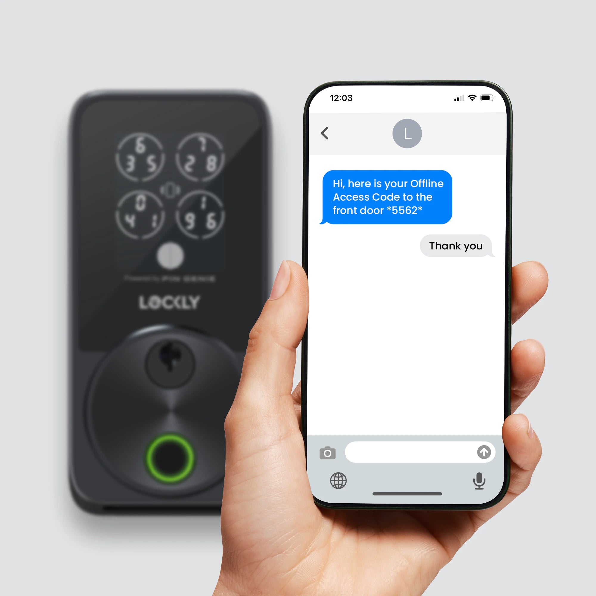 A single-use code for guests, no app download needed, issued remotely even if your lock is offline.