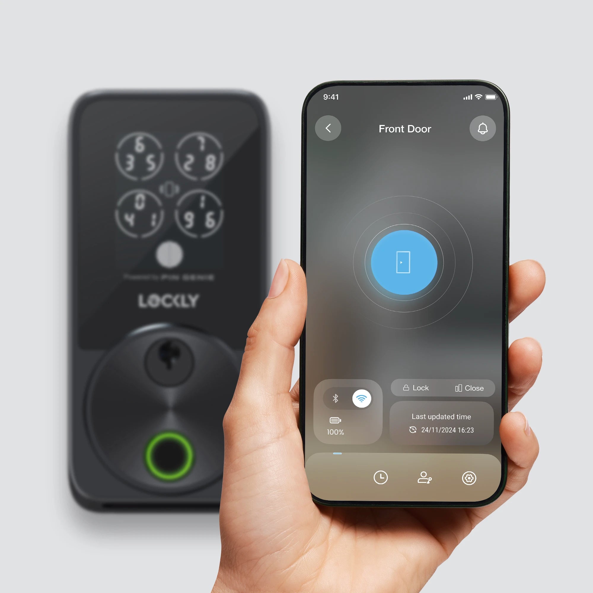 Use the Lockly Home app on your smartphone to lock or unlock your door.